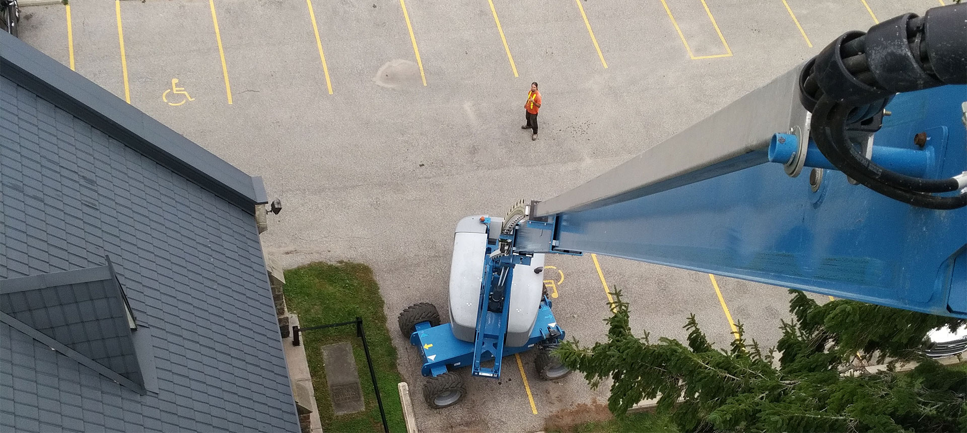 Interesting Fact: Many churches have very steep rooftops that require the use of a lift to safely install the solar system. The picture at the top of this page shows the installer’s view from the lift platform. It’s not a job for the faint of heart!