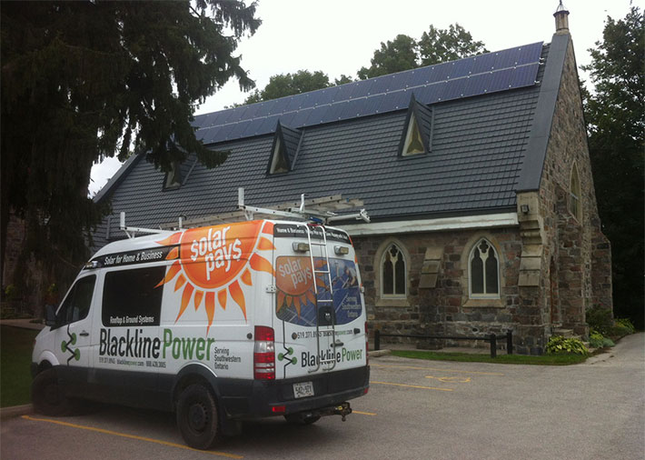 Project Details: The priest had experience with solar from a MicroFIT system installed at her previous church and thus already knew the benefits. The Church Council opted for net metering at this site as it offered the highest rate of return (MicroFIT payment rates decreased steadily as the program matured).