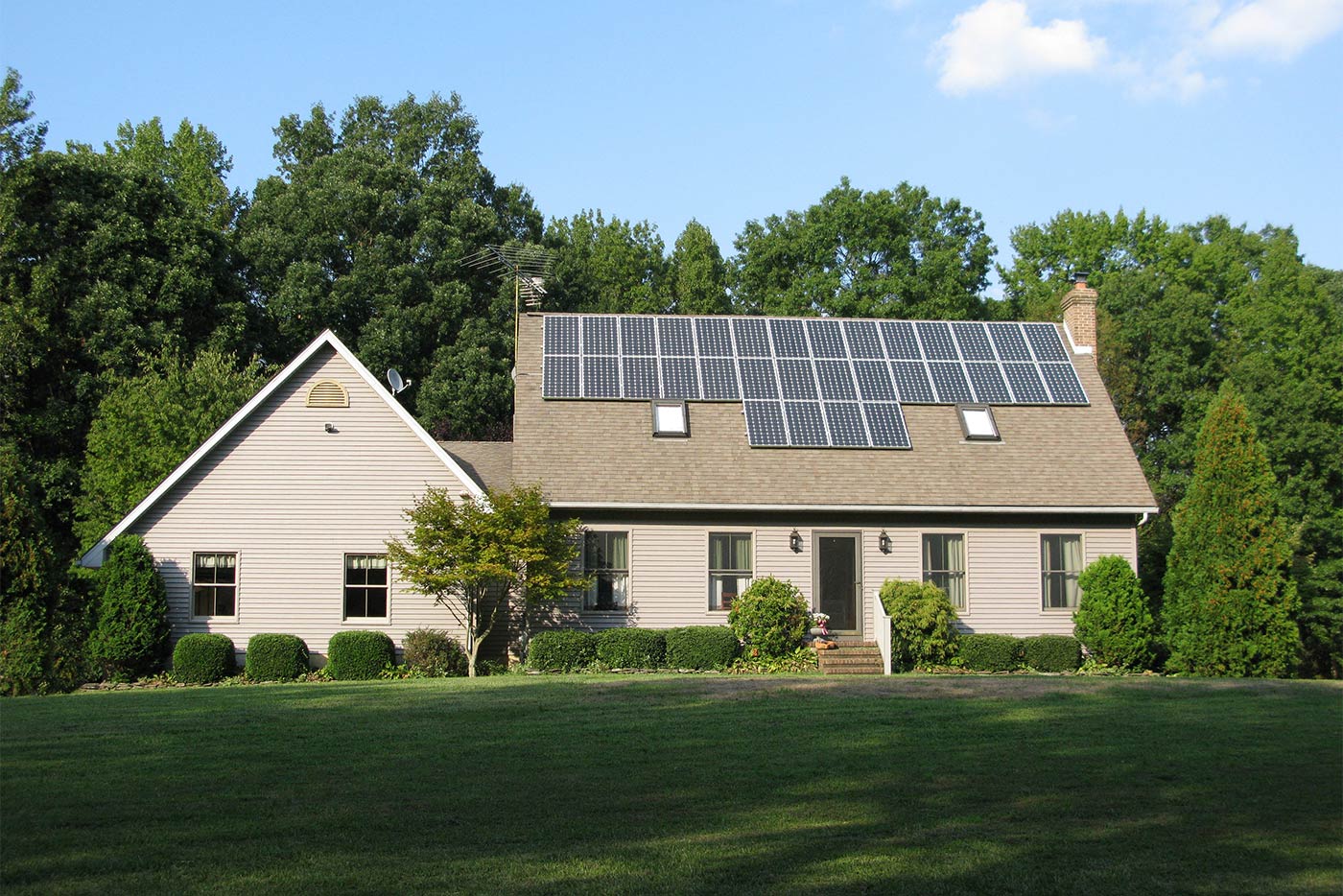 Interesting Fact: This is a standing seam steel roof. Many people are under the impression that it is not optimal for solar and often inquire about using thin film solar panels in between the seams. While thin film technology has recently been in the media for becoming increasingly efficient and decreasing in price, the bottom line is that it is still more expensive, less efficient, requires a much larger installation area, has a lower warranty, and is less suitable to cold climates. Standing seam is one of the best roof types for solar; we simply attach to the ribs.